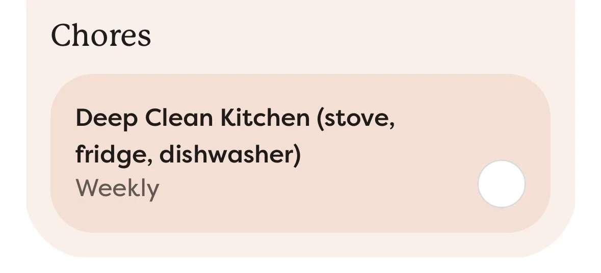 The tidying reminders for my bedroom and bathroom work the same way the kids' chore reminders work for them. I do not have to think about it or try to remember the last time I wiped down my bathroom counter.